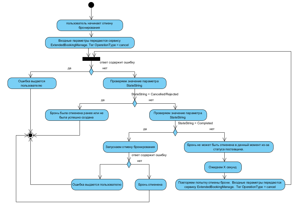 Сервис ExtendedBookingManage предоставляет возможность создания, проверки статуса и отмены брони выбранного рейта. Ключевым отличием в запросах создания, актуализации статуса, отмены брони является значение передаваемого параметра OperationType. Данный параметр может принимать следующие значения: